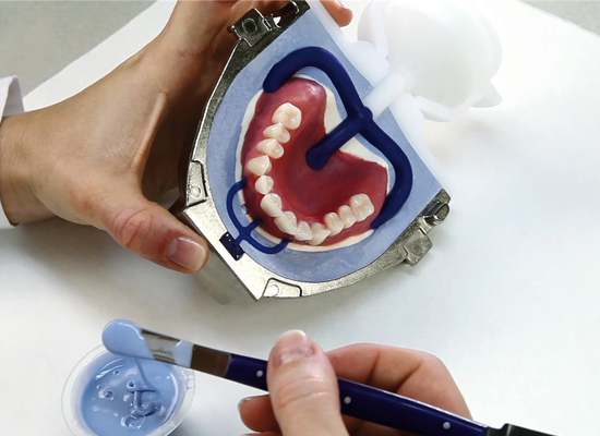 Whether it be a partial removable denture or a full arch appliance, all cases are set up using a semi adjustable articulator, this ensures accuracy when transferring the bite provided. All partial dentures are fitted to a duplicate model which should mean minimal chair side adjustment time. A varying quality of teeth can be used on all cases ranging from the excellent value NHS tooth right through to the higher end multi layered teeth used in Private cases. Dentures can be finished in several acrylic bases ranging from our NHS acrylic right through to the Ivoclar Ivobase High Impact with optional colour tone.